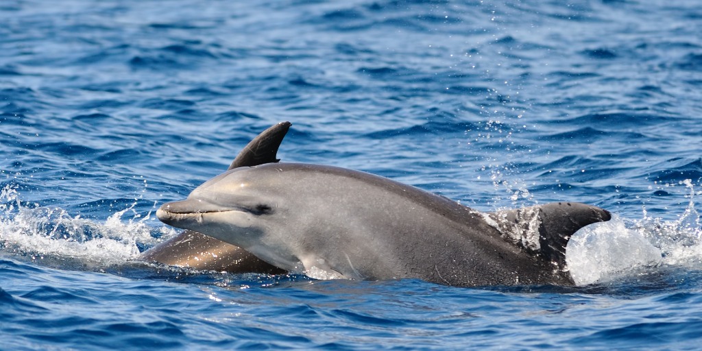 Like all dolphins, bottlenose dolphins are very sociable, living in pods of 10-30 members, though some pods with as many as 1,000 dolphins have been spotted! It’s sometimes possible to see a mother and calf swimming side by side! Keep an eye out for the vertical lines on the calf’s side – a remnant of when it was curled up inside its mother.