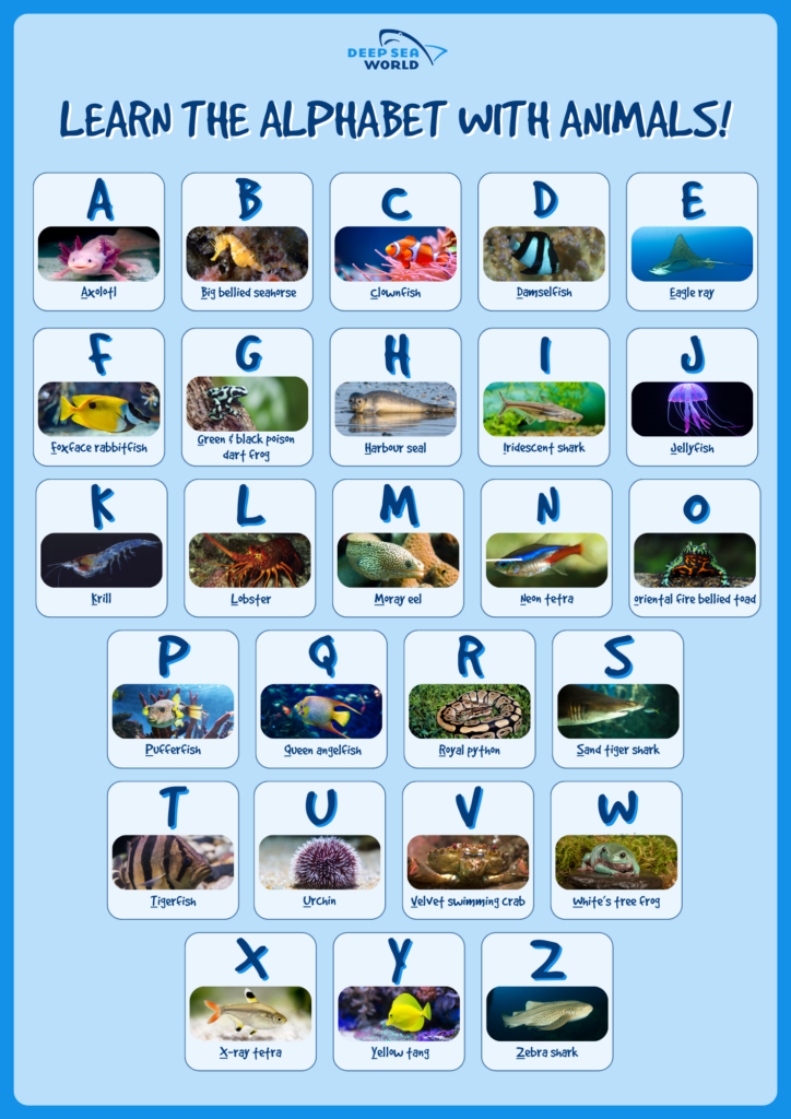 Each day throws up a new learning opportunity, and at Deep Sea Aquarium, we love passing on our extensive knowledge of the animal kingdom. So, what better way to showcase some of our favourite underwater and land creatures than through the alphabet?