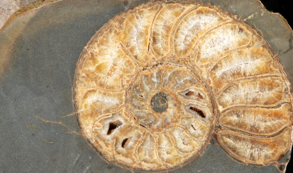 The most common forms of fossils are snails, coral, sea urchins, sea sponges, and ammonites.