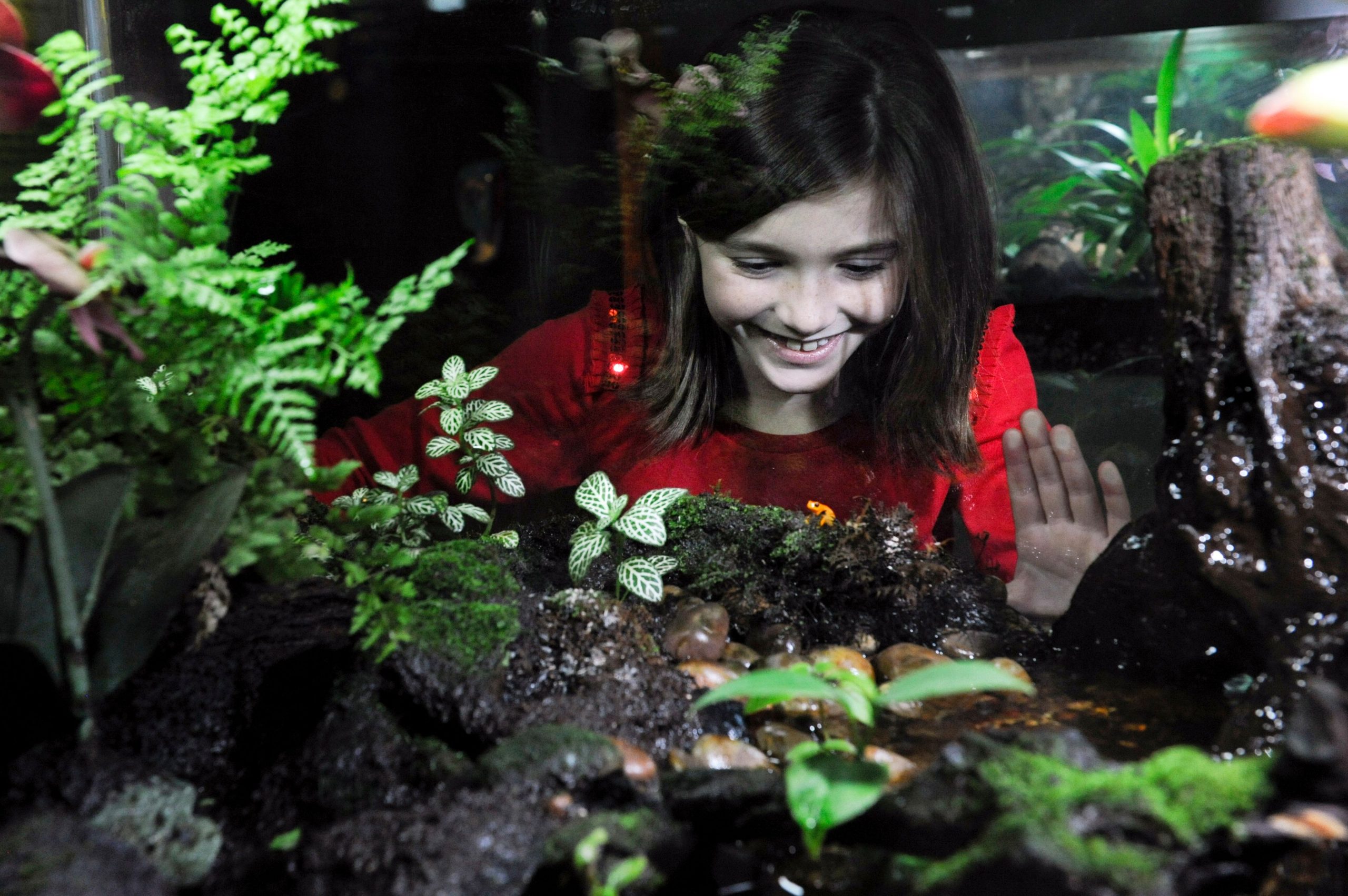 “Temple” is no exaggeration when it comes to this enchanting exhibition of our colourful amphibian cousins. This is a place to appreciate the diverse and wonderful world of tropical frogs, salamanders, pythons, snails and axolotls – from the golden mantella (Mantella aurantiaca) to the barred tiger salamander (Ambystoma mavortium).